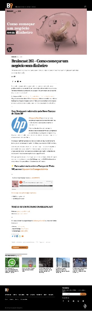 DestaqueBraincast 261 – Como começar um negócio sem dinheiroB9 · 11 de fevereiro de 2019Entrevista como CEO e fundador da trampos.co no podcast Braincast, discutindo empreendedorismo e desafios de criar um negócio com pouco capital inicial.
