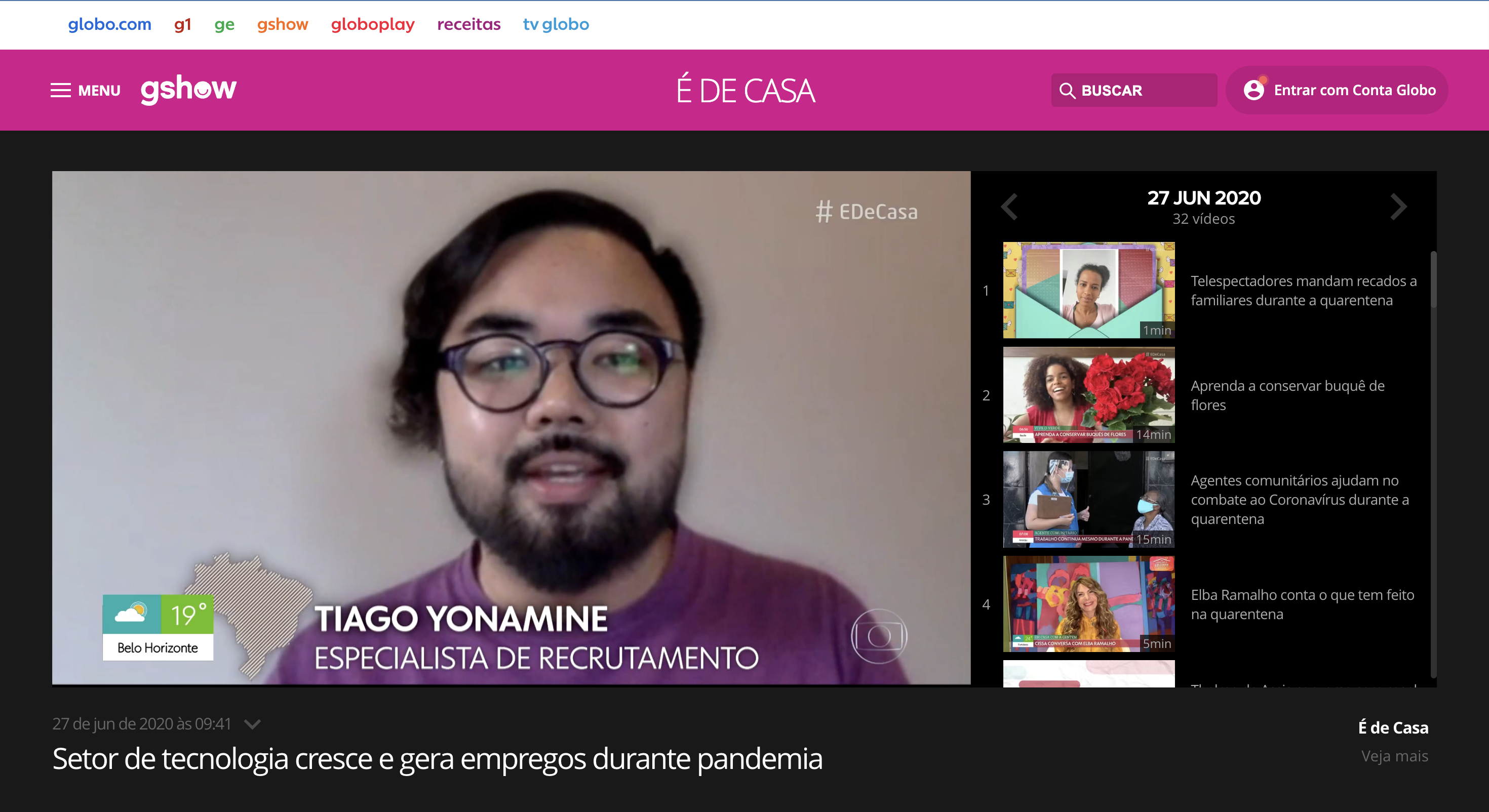 DestaqueSetor de tecnologia cresce e gera empregos durante pandemiaÉ de Casa (Globo) · 27 de junho de 2020Participação no programa É de Casa da TV Globo, discutindo o crescimento do setor de tecnologia e geração de empregos durante a pandemia.