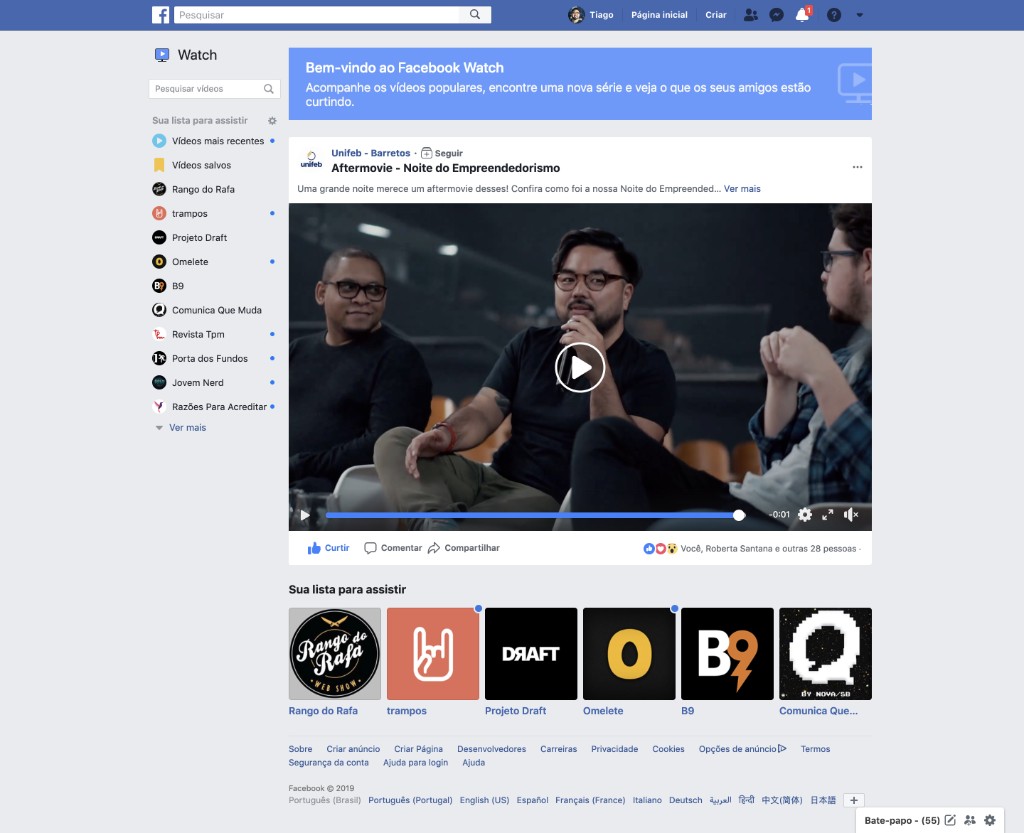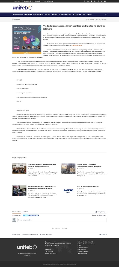 Aftermovie - Noite do EmpreendedorismoUnifeb - Barretos (Facebook Watch) · 19 de setembro de 2018Vídeo em destaque no Facebook Watch mostrando a Noite do Empreendedorismo em Barretos, com participação como palestrante.