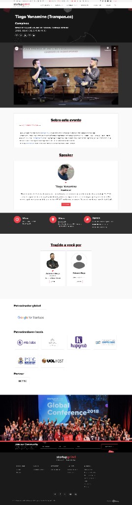 DestaqueTiago Yonamine (trampos.co) - Fireside chatStartup Grind Campinas · 25 de outubro de 2018Fireside chat como palestrante principal no Startup Grind Campinas, no Google Campus São Paulo.